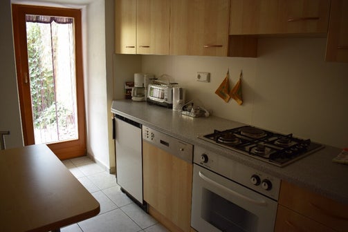 Die FEWO Zwölferspitz - Wasserfall ist geeignet für 2 Personen und hat neben Küche, Wohnzimmer/Schlafraum, neuer Dusche/WC noch eine eigene Terrasse mit einem wunderschönen Ausblick auf die Bergwelt im speziellen dem Zwölferspitz und auf den Wasserfall Flim. Die Größe der Wohnung ist ca 32 m² und die Küche ist voll ausgestattet auch mit einer Spülmaschine.